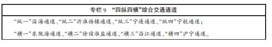 增強通道功能,提高保障通過能力,重點建設沿海、沿江、東隴海和滬寧4個國家級綜合交通大通道,加快建設沂淮揚鎮、寧杭、寧連和徐宿淮鹽4個省級綜合交通通道,到2015年,基本形成縱貫南北、橫貫東西的“四縱四橫”綜合交通大通道。