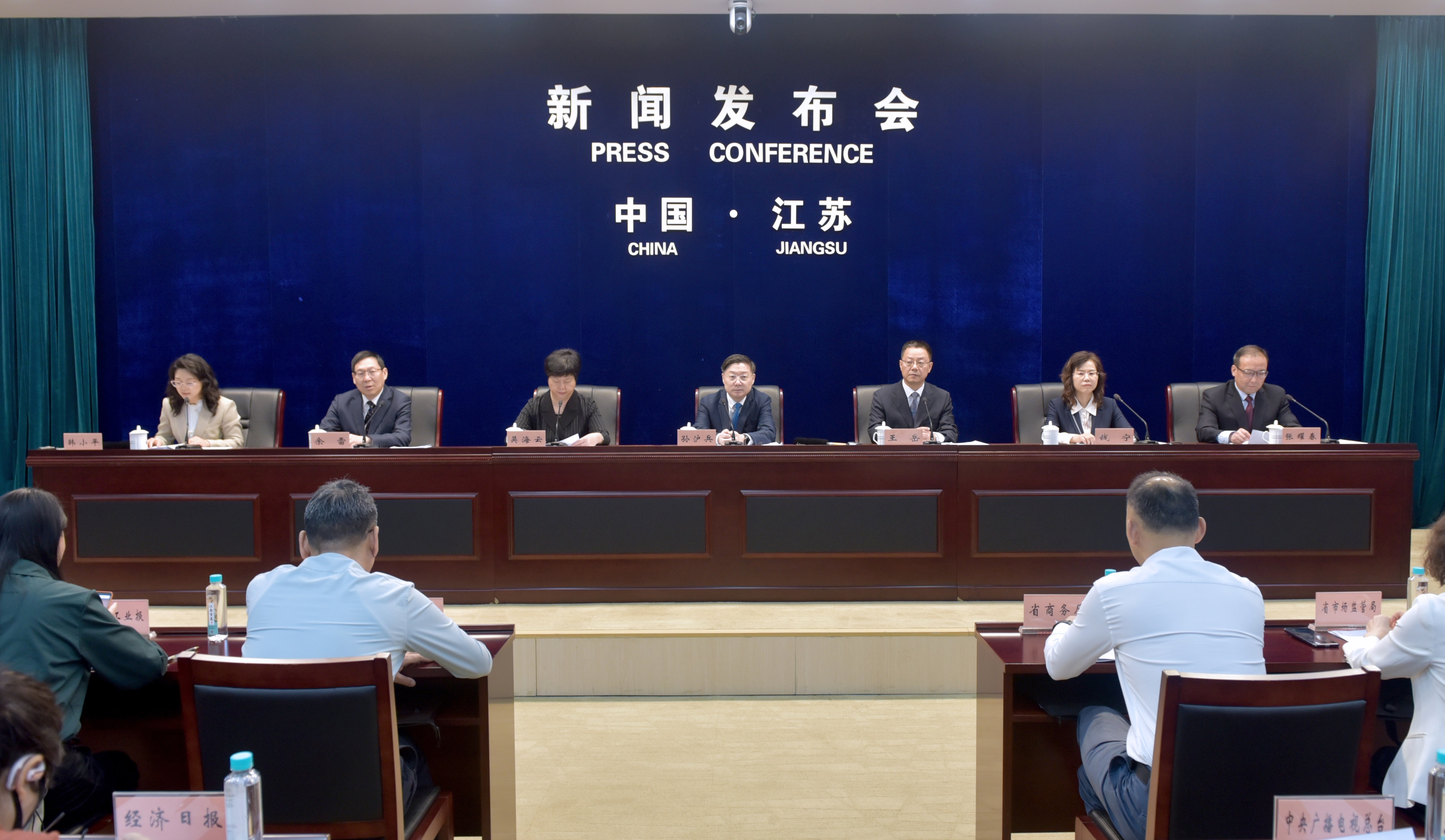 出席今天新聞發布會的有:省市場監管局副局長孫滬兵先生,省發展改革委副主任王嶽先生,省商務廳副廳長吳海雲女士,省文化和旅遊廳副廳長錢寧女士,省工業和信息化廳二級巡視員餘雷先生,省農業農村廳二級巡視員張耀春先生。我是省政府辦公廳新聞協調處韓小平。