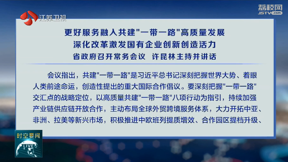 12月10日,省政府召開常務會議,認真學習貫徹習近平總書記在第四次“一帶一路”建設工作座談會上的重要講話、對供銷合作社工作作出的重要指示精神,貫徹落實全國冬春農田水利暨高標準農田建設視頻會議、地方國企改革和監管工作視頻會議要求,研究部署下一階段重點工作。省長許昆林主持會議並講話。查看全文 >